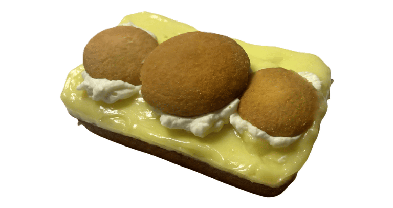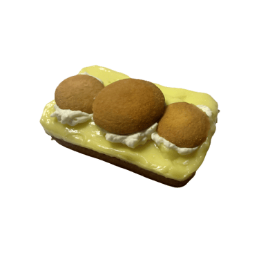Creamy banana bliss meets dense white chocolate chew, topped with whipped cream and wafer crunch. A soulful twist on grandma's signature dessert.